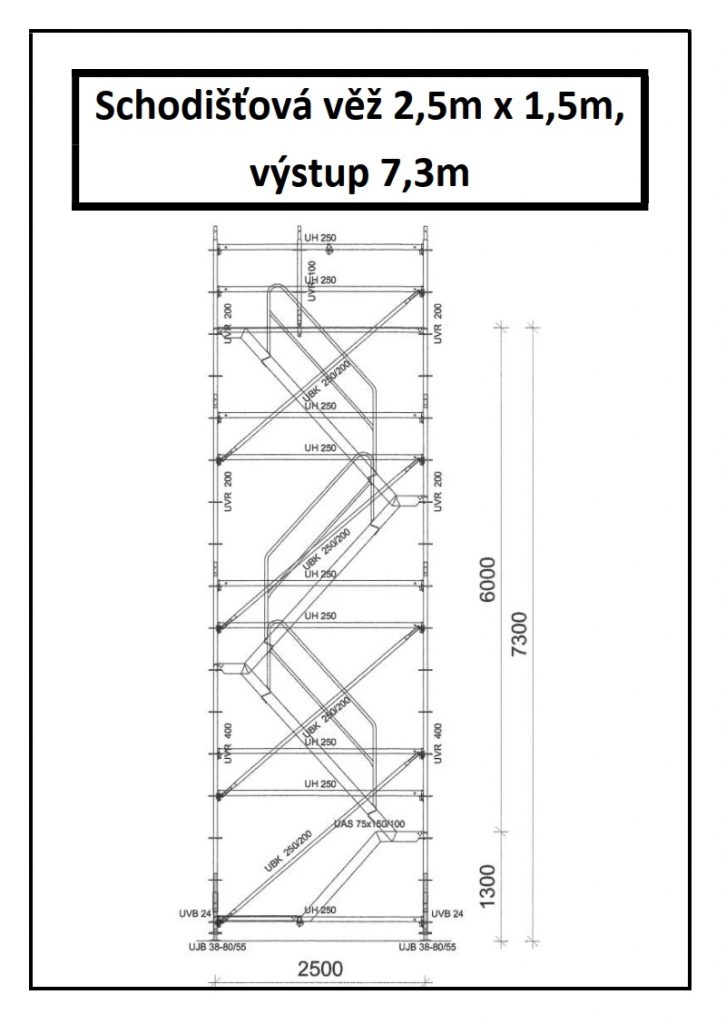 Schodišťová věž 2,5m x 1,5m, výstup 7,3m