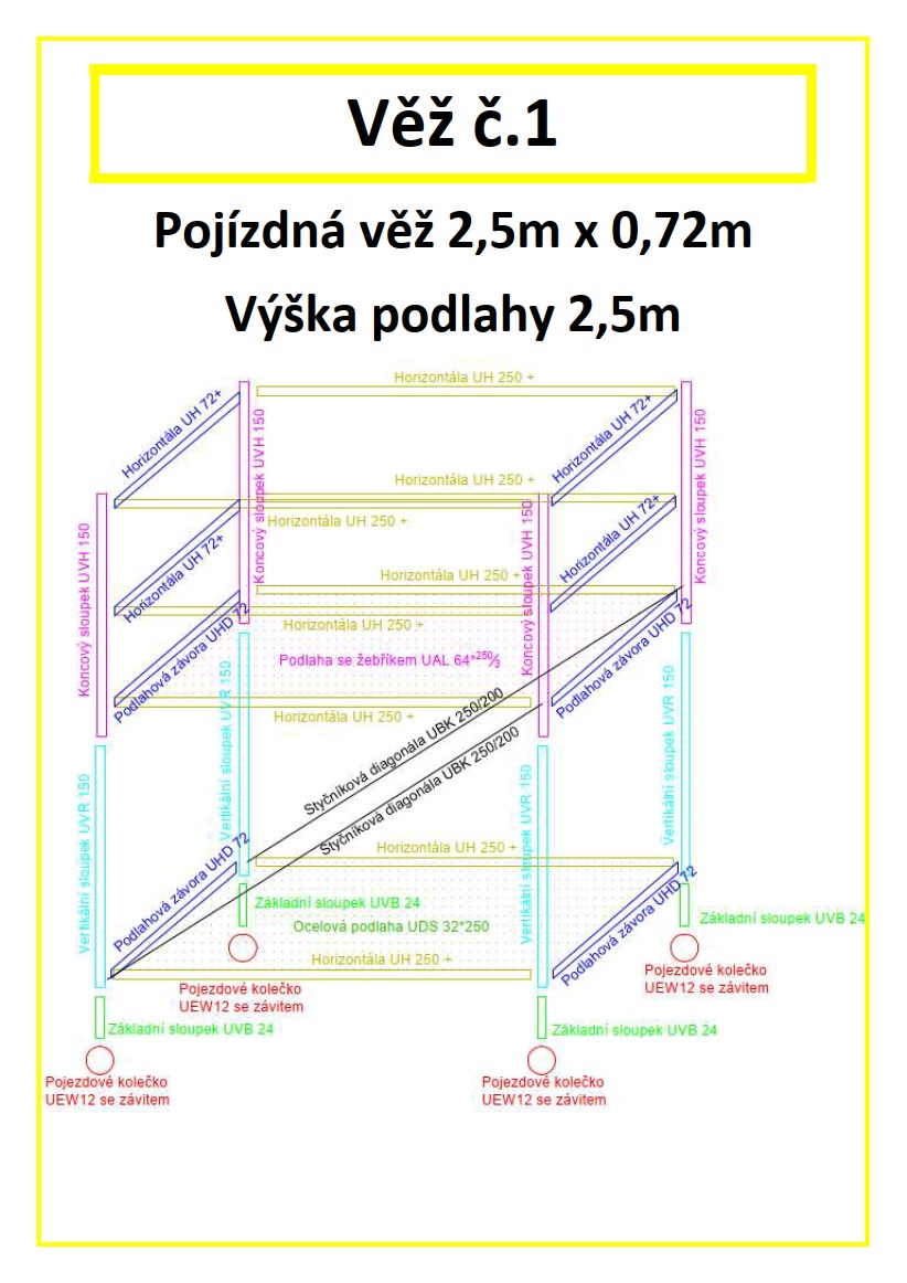Věž č.1 - Pojízdná věž 2,5m x 0,72m, výška podlahy 2,5m