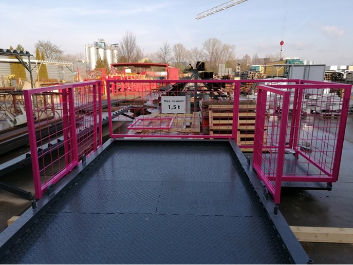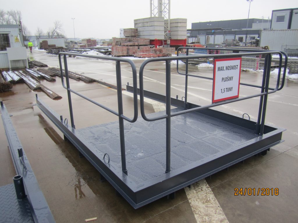 Plošina o nosnosti 1,50 t pro zásobování nebo vyklízení stavebního materiálu v jednotlivých patrech stavby. Plošiny jsou ve třech variantách – jednoduchá, rozšiřovatelná s našroubovanými postranními ochozy popř. s vysouvacími postranními ochozy.