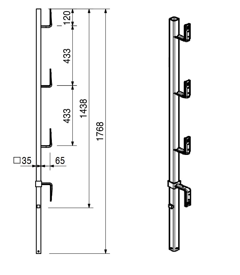 Sloupek ochranného zábradlí 1,10m