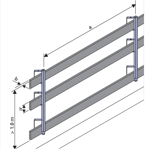 V kombinaci s patkou PDF a ochrannou mříží PMB tvoří dočasnou ochranu proti pádu do volného prostoru. Výška 110 cm.
